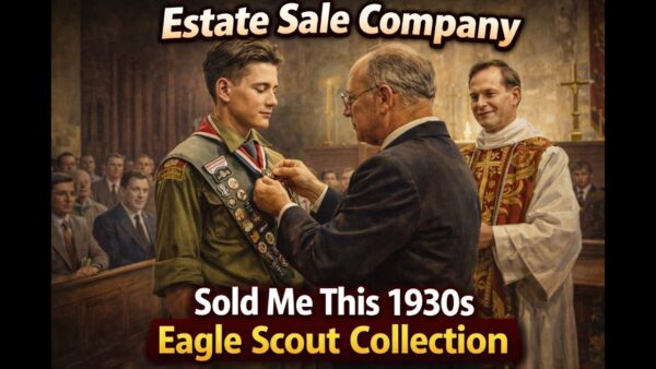 With the help of an estate sale company in Oklahoma I was able to purchase this Eagle Scout collection and share it in the video. Truth be told the tipping point for me (pun intended) was the Scout sheath knife. Although in it’s current state it’s rusty and toasty….I know my friend Bill Chadek can work his magic and bring it back to life. I can’t wait to put together my next package to Bill and see that transformation.