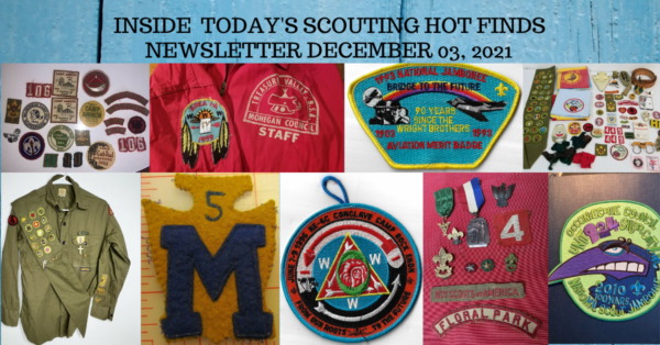 On eBay this weekend I have 283 live auctions with a heavy dose of neckerchiefs. Last night I had one sell for over $300 so that was a nice win. My big closer this weekend is a set of 1930s Camp Wisdom patches on a sash.